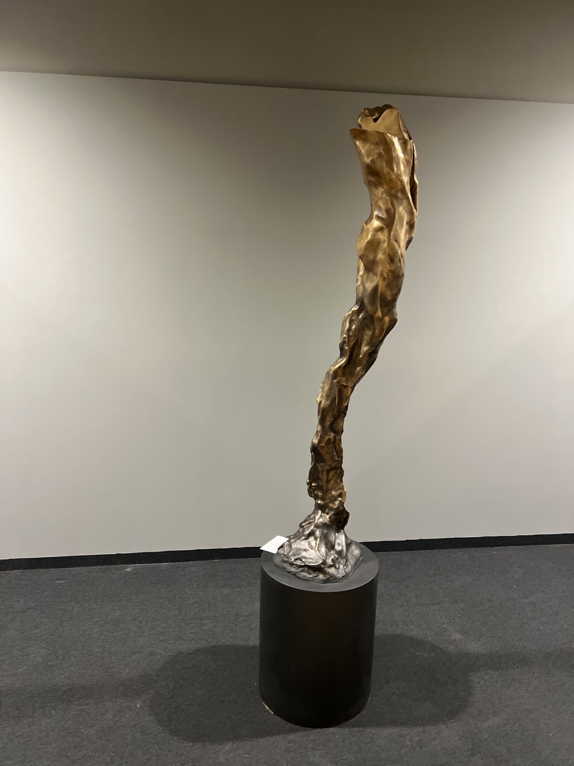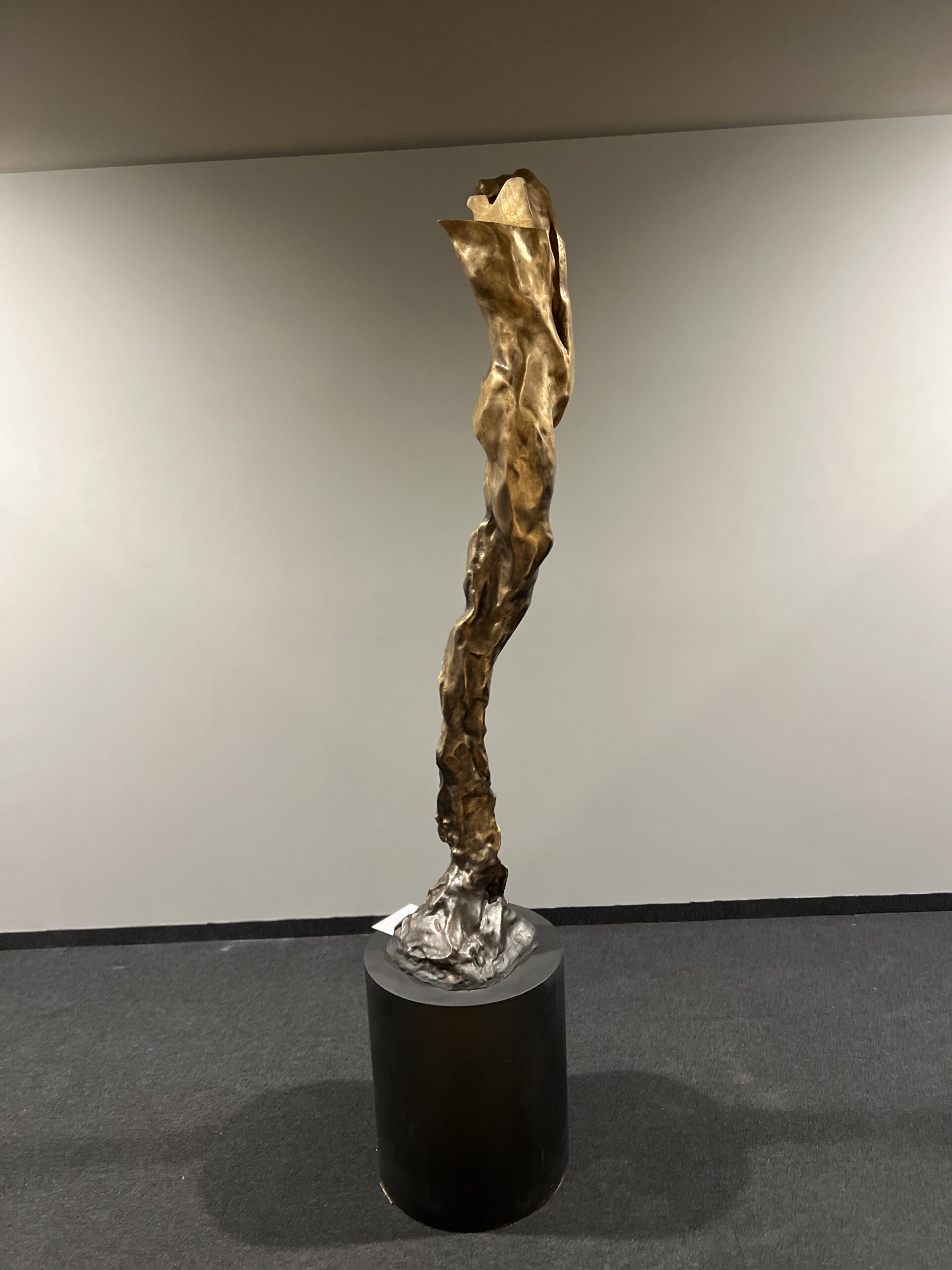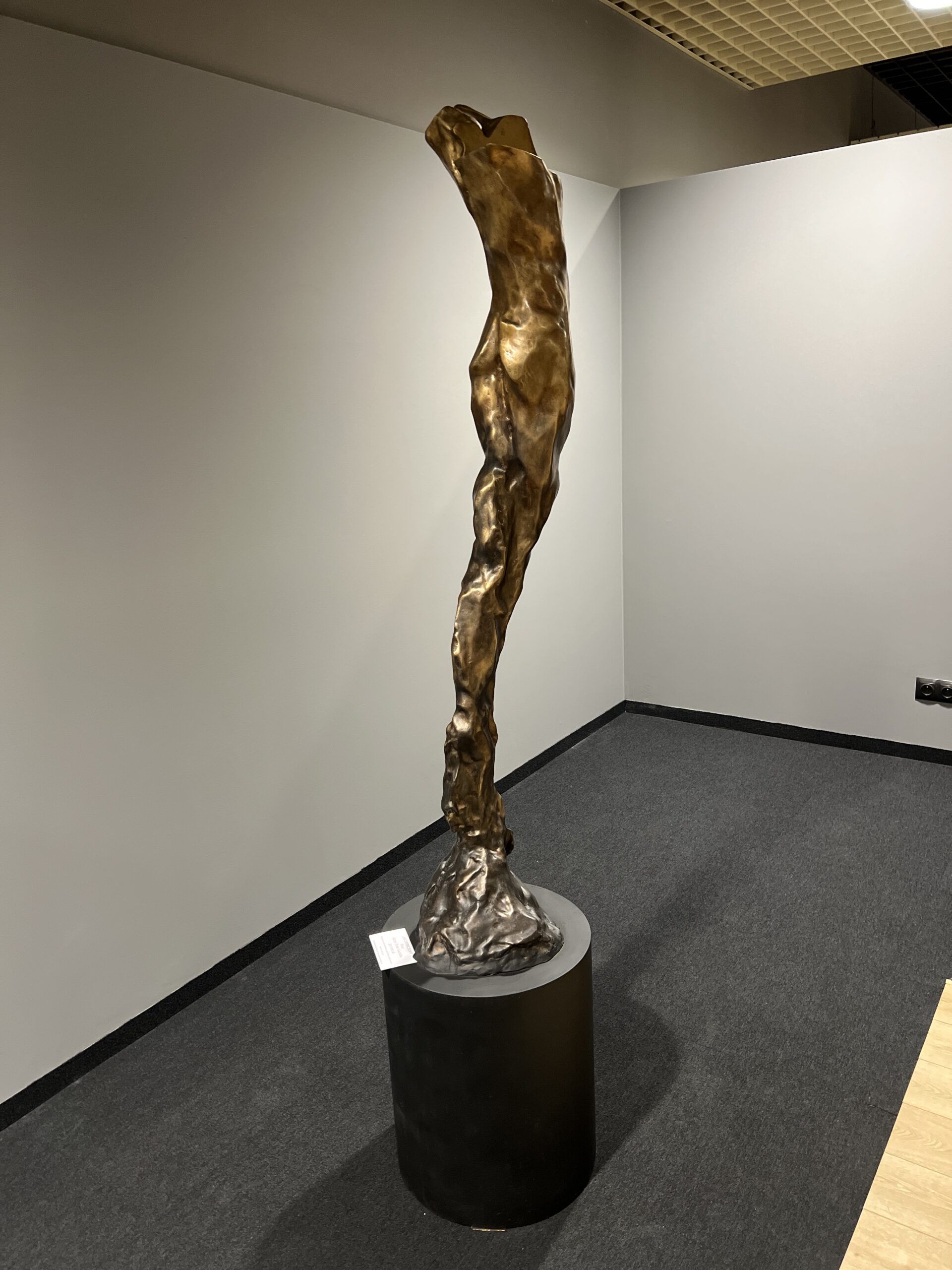 Postument ze stali, o matowym czarnym wykończeniu, zapewnia stabilność i kontrastuje z błyszczącym brązem, eksponując smukłą sylwetkę rzeźby. „Nieskończony” to doskonały element dekoracyjny do nowoczesnych wnętrz, takich jak salony, biura czy galerie, wnosząc poczucie harmonii i ponadczasowości.