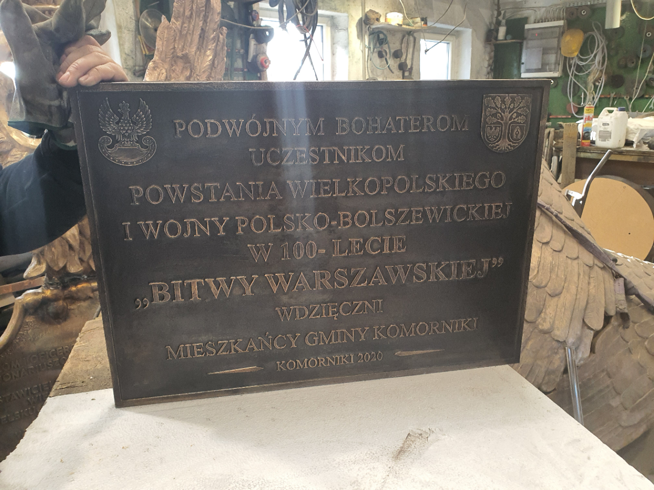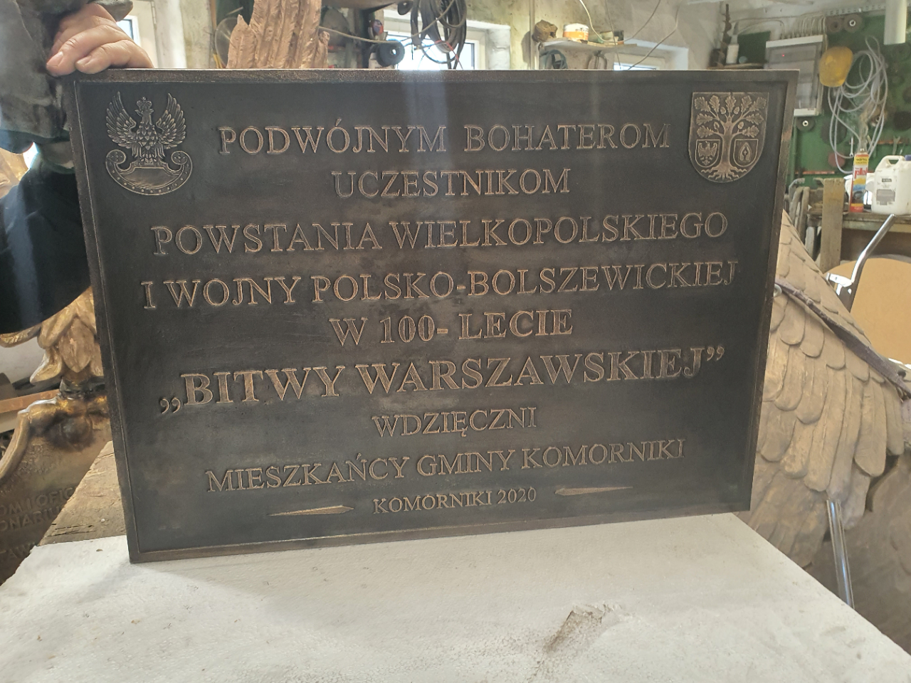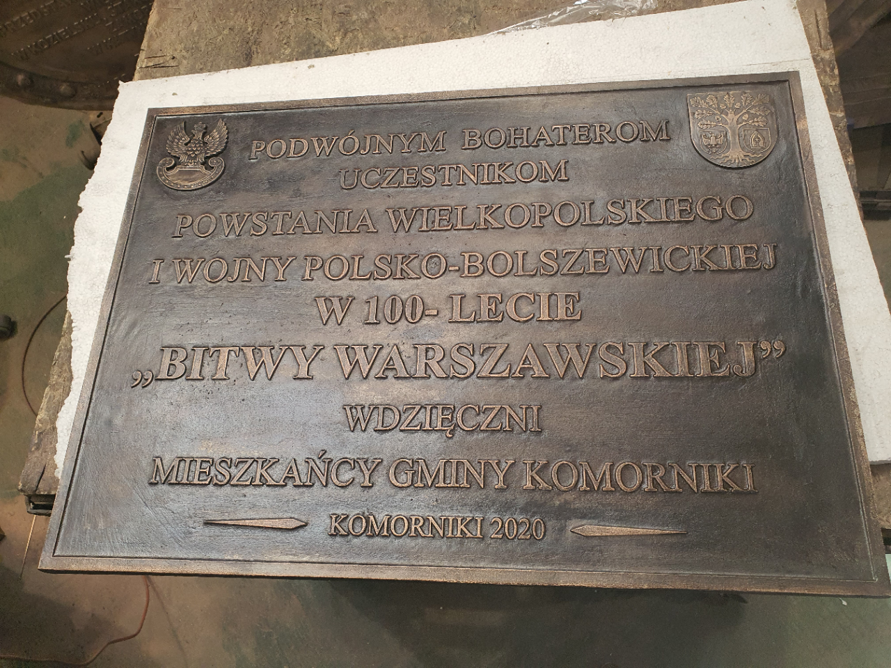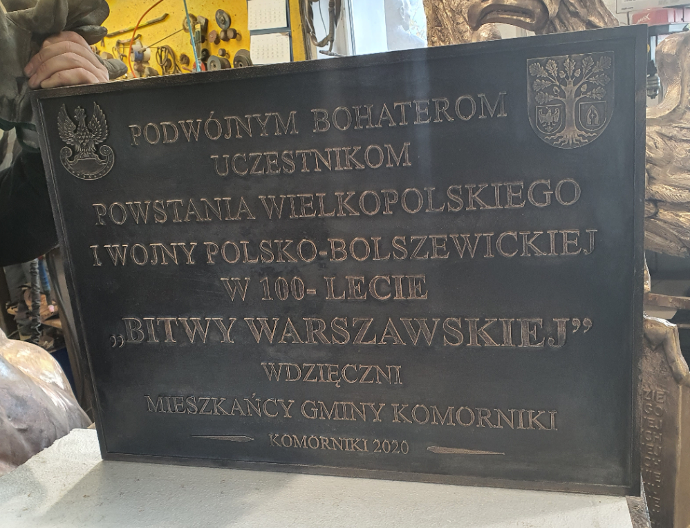Tablica poświęcona bohaterom Powstania Wielkopolskiego oraz wojny polsko-bolszewickiej ufundowana w 100 lecie Bitwy Warszawskiej przez mieszkańców Komornik.